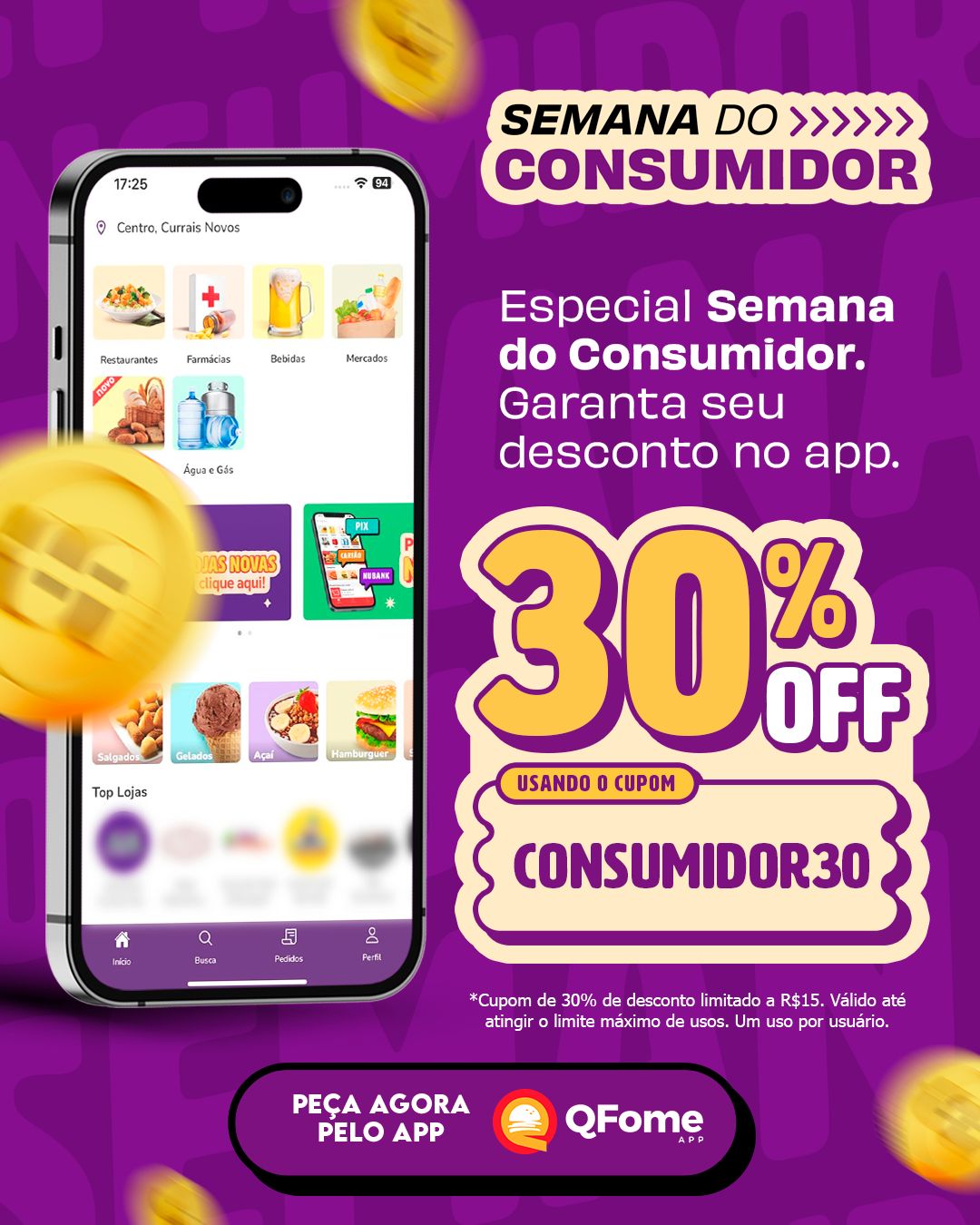Para celebrar a Semana do Consumidor, o aplicativo de delivery QFome lançou uma promoção especial que garante 30% de desconto nos pedidos realizados pela plataforma. A campanha é válida entre os dias 10 e 13 de março.
