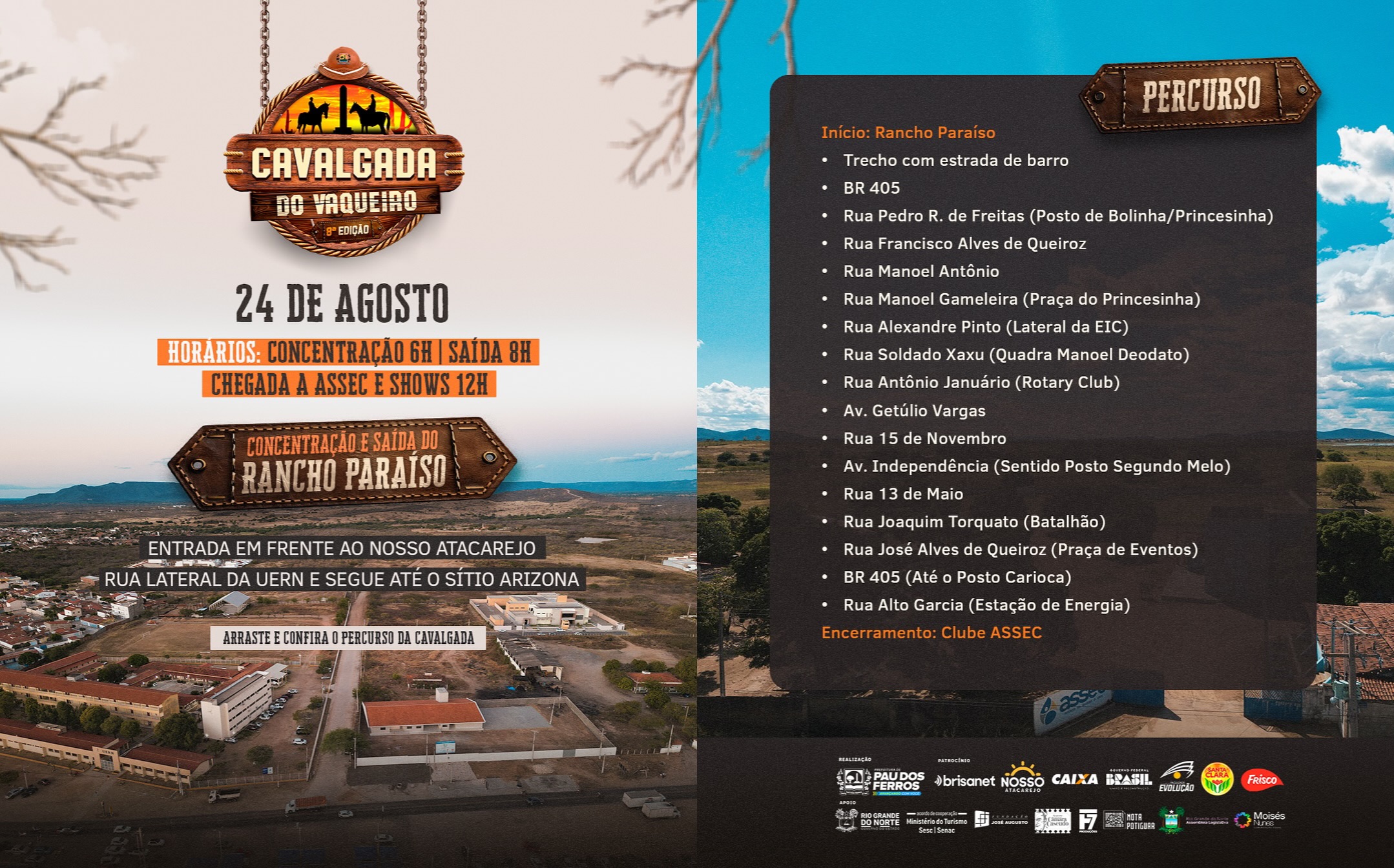 A Cavalgada do Vaqueiro abrirá oficialmente, neste domingo (24 de agosto), a programação da Finecap 2025 – Feira Intermunicipal de Negócios, Educação, Cultura e Turismo do Alto Oeste Potiguar, que celebra a emancipação política de Pau dos Ferros. O evento promete ser histórico, reunindo um recorde de vaqueiros e amazonas inscritos, além da participação popular em um grande cortejo pelas ruas da cidade. A concentração será no Rancho Paraíso a partir das 6h, com saída às 8h e chegada ao Clube ASSEC ao meio-dia, onde a festa seguirá com shows musicais.