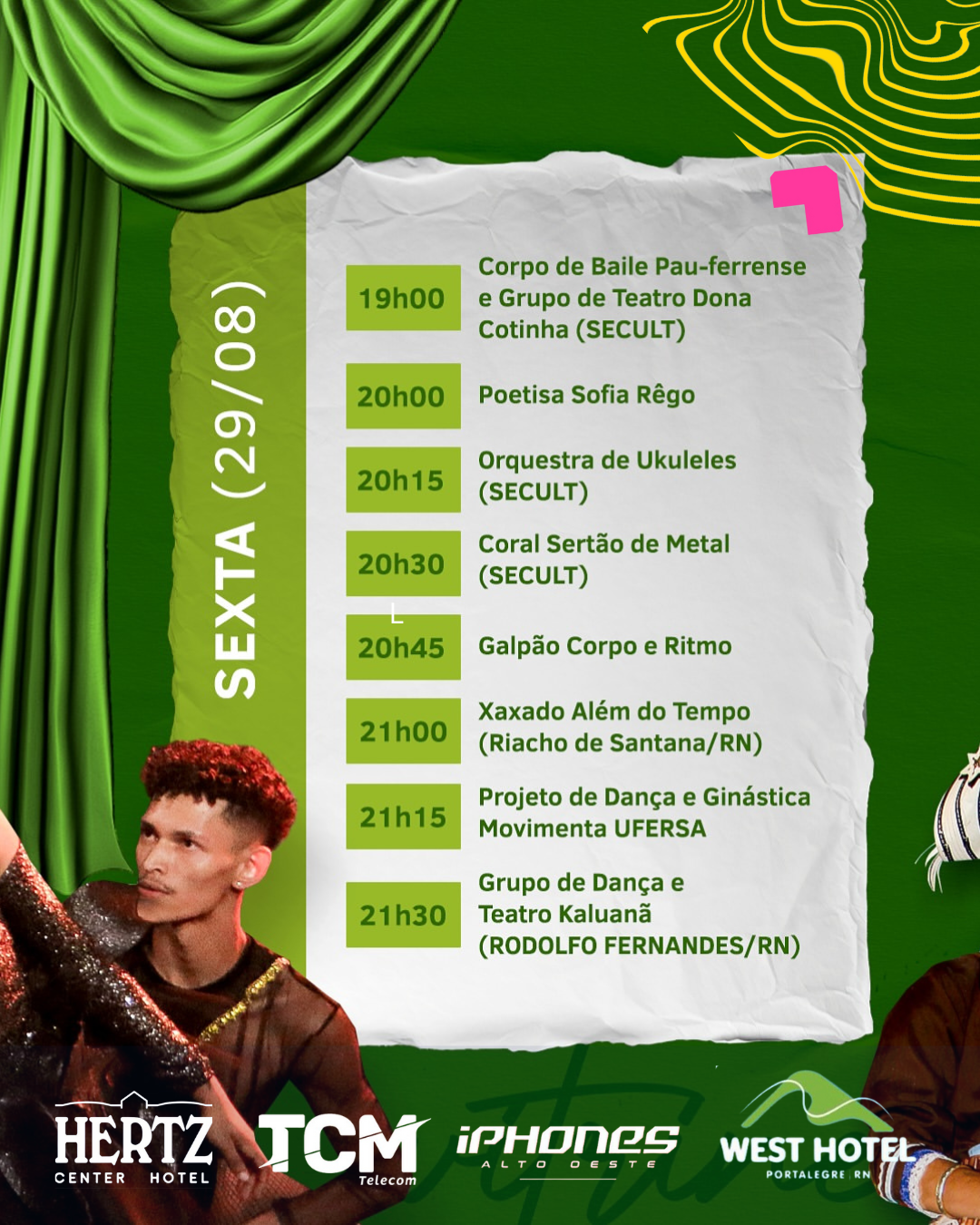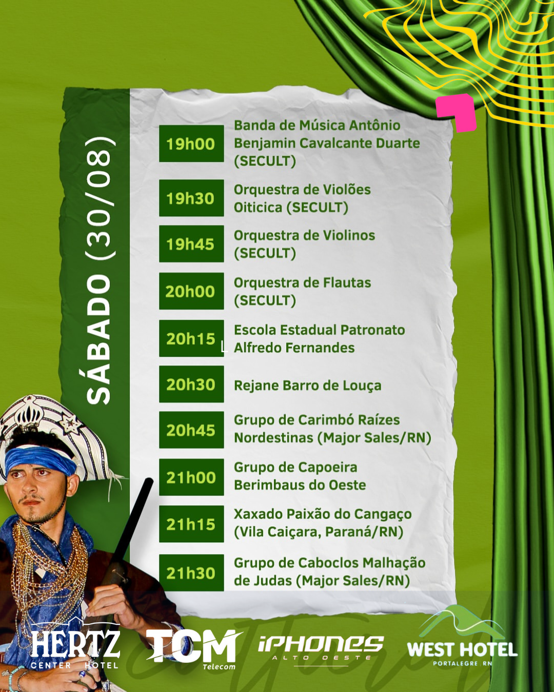 Nos dias 29 e 30 de agosto, a partir das 19h, na Avenida Getúlio Vargas, o público poderá conferir de perto o talento e a diversidade cultural da região.
