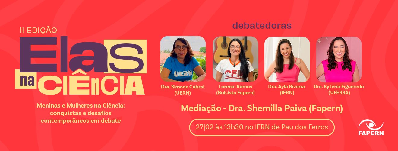 A Fundação de Amparo e Promoção da Ciência, Tecnologia e Inovação do RN (Fapern) realiza, no próximo dia 27 de fevereiro, a segunda edição do evento “Elas na Ciência”, no auditório do Instituto Federal do Rio Grande do Norte – Campus Pau dos Ferros. A programação tem início às 13h30 e ocorre em alusão ao Dia Internacional de Meninas e Mulheres na Ciência, celebrado em 11 de fevereiro.