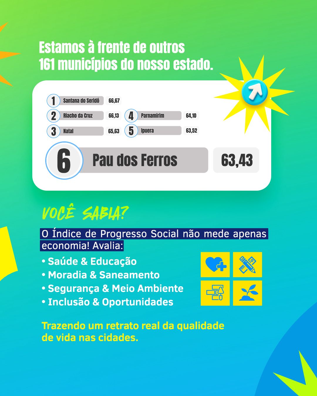 O desempenho de Pau dos Ferros no ranking evidencia avanços importantes nas políticas públicas e reforça o compromisso do município com a melhoria contínua da qualidade de vida da população.