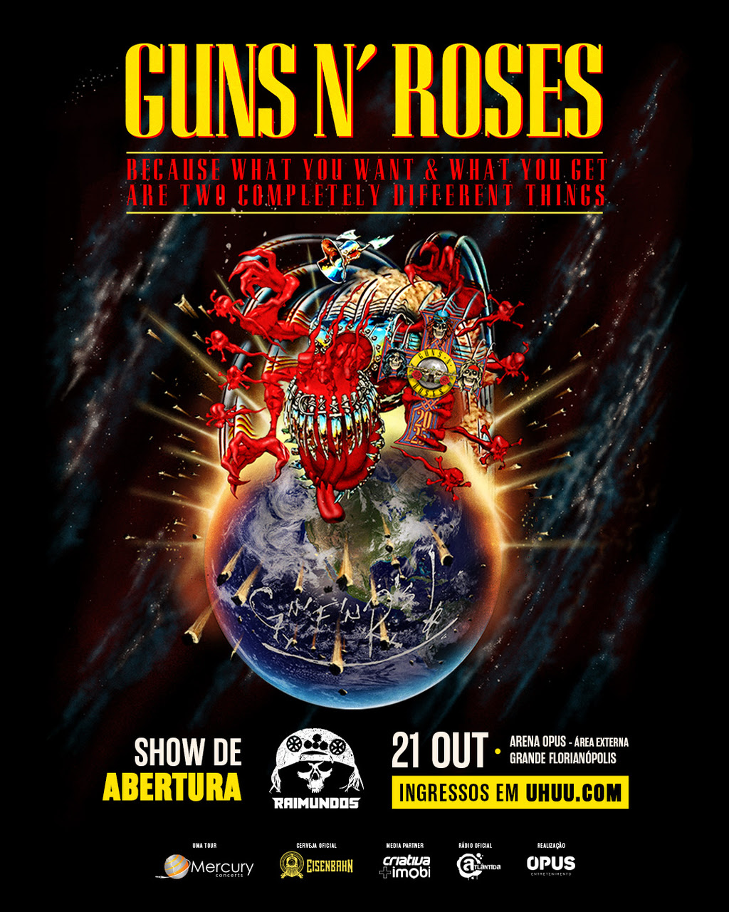 Guns N’ Roses começa hoje turnê no Brasil, na Arena Opus, na Grande Florianópolis