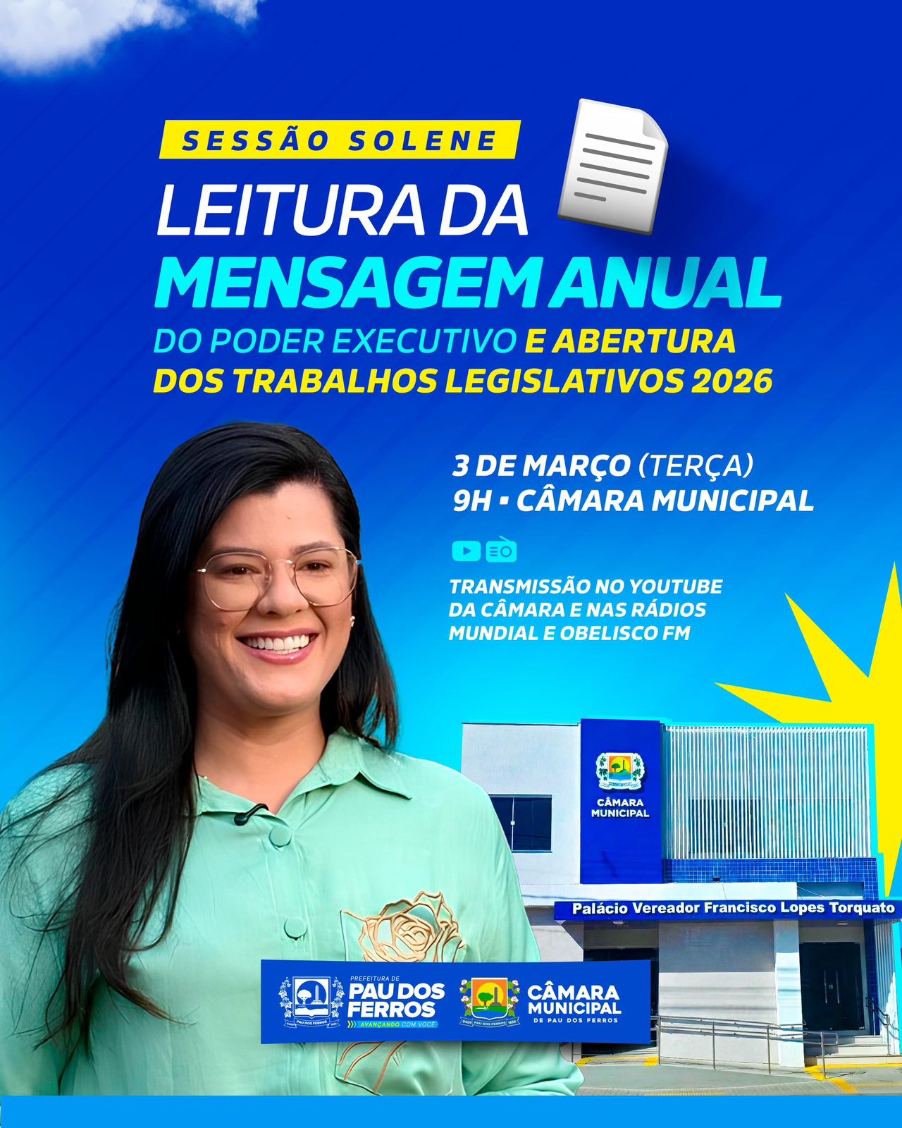 Com mensagem da prefeita, Ano Legislativo é inaugurado no Palácio Francisco Torquato