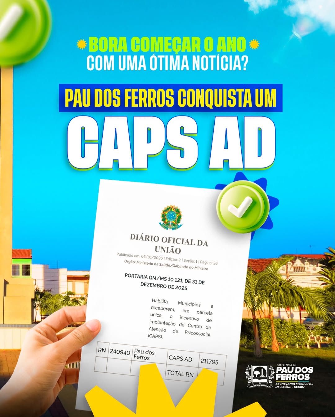 Pau dos Ferros é oficialmente contemplada com a implantação do CAPS AD